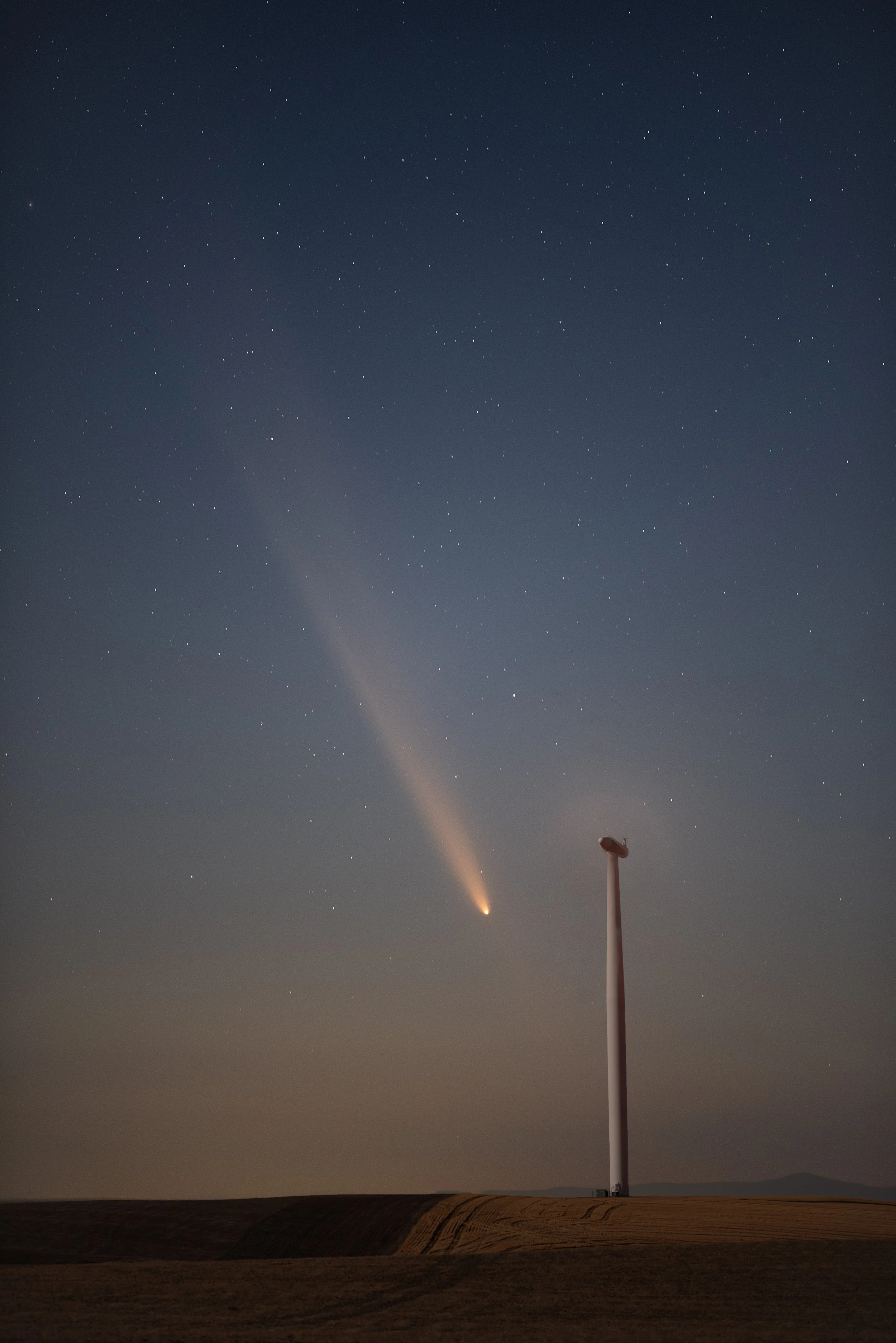 Deepscape: Comet C/2023 A3 (Tsuchinshan-ATLAS) setting behind a wind turbine. Oregon. USA.